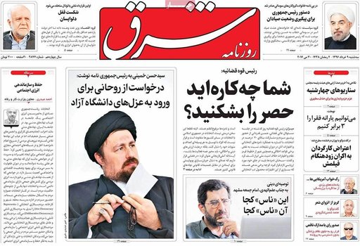 تصاویر/ صفحه اول روزنامههای ۹ خرداد ۹۶