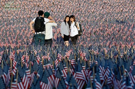 تصاویر/ کاشت پرچم به تعداد نظامیان کشته شده آمریکا