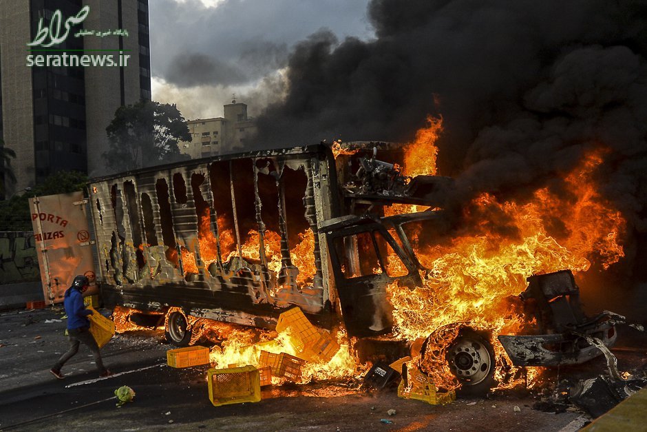 آتش زدن یک کامیون در تظاهرات ضد دولتی ونزوئلا