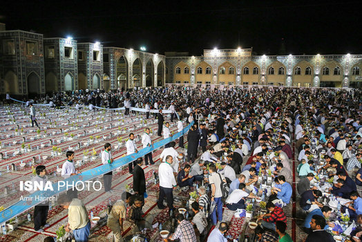 همه سال جمعیت زیادی از زائران امام رضا (ع) در ماه مبارک رمضان مهمان سفره آن حضرت هستند.