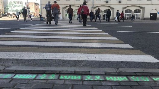 به گزارش ایسنا از ریامو، در این طرح که در برخی از خیابانهای مسکو به اجرا درآمده، در محل های عبور رهگذران پیاده در تقاطع چهارراه ها ،چراغ های راهنمایی و پیام های هشدار با چراغ های LED در کف خیابان به نمایش درآمده است.