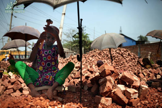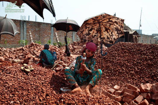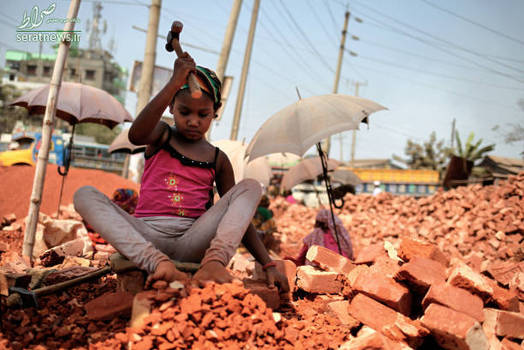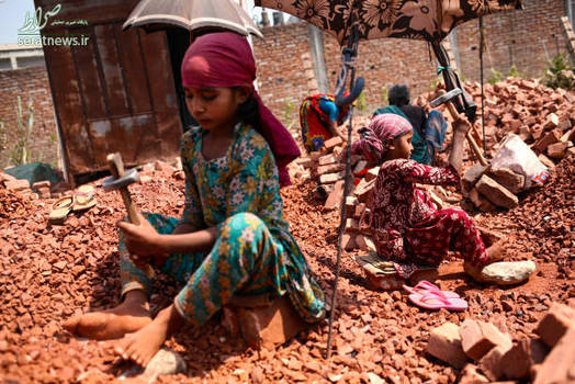 در بنگلادش کودکانی در کارگاه شکستن آجر مشغول کار هستند. این کودکان کار در شرایط سخت و با پای برهنه از صبح تا غروب کار می کنند و فقط روزی کمتر از دو دلار حقوق دریافت می کنند.