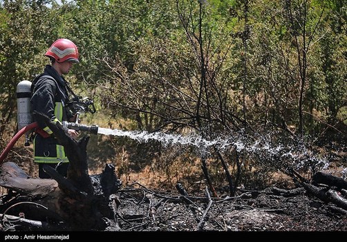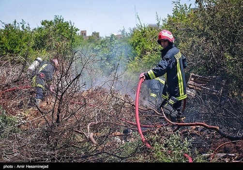 آتش سوری در باغچه های اطراف قم