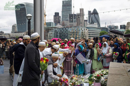 صدها تن از مسلمانان انگلیس در مراسم یادبود قربانیان حملات تروریستی لندن شرکت کرده و با اهدای گل نسبت به آنان ادای احترام کردند. در این مراسم صادق خان شهردار مسلمان لندن نیز حضور داشت و به سخنرانی پرداخت. در حملاتی که در نیمه شب شنبه 3 ژوئن در لاندن بریج و بارو مارکت رخ داد 7 نفر کشته و 48 نفر زخمی شدند که حال 21 نفر آنها وخیم اعلام شده است. داعش مسئولیت این حملات را بر عهده گرفته است.