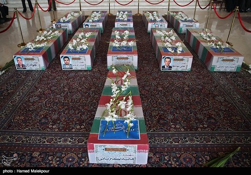 مراسم وداع با پیکرهای شهدای ترور در مجلس