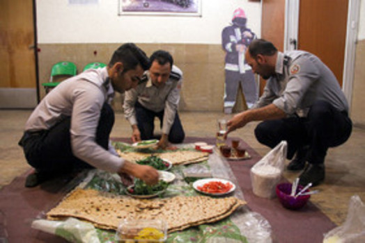 در لحظات معنوی ماه رمضان که اکثر خانواده ها در کنار یکدیگر هستند و از دورهمی سفره افطار لذت میبرند، افرادی هستند که در این لحظات نیز احساس مسوولیت و وظیفه می کنند و در خانه دوم خود و محل کار حضور دارند و تمام ساعات شبانه روز آماده انجام خدمت هستند.این گزارش از لحظات افطار امدادگران هلال احمر، آتش نشانان، امدادگران اورژانس و فوریتهای پزشکی، پزشکان و پرستاران بیمارستان و کادر نیروی انتظامی در طی شب های ماه مبارک رمضان به تصویر کشیده شده است.