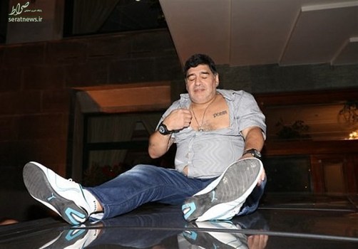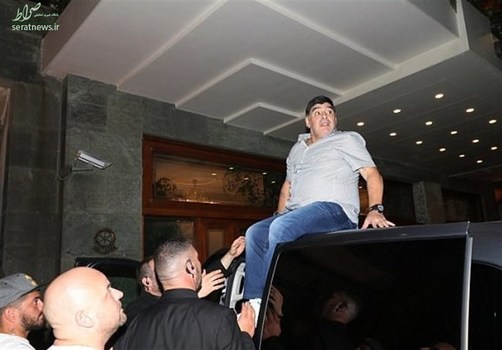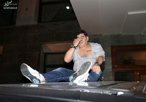 تصاویر/ حرکات عجیب اسطوره؛ مارادونا روی سقف خودرو!