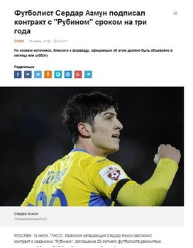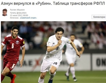 خبرگزاری دولتی روسیه (تاس)، معتبرترین رسانههای ورزشی این کشور از جمله روزنامههای اسپورت اکسپرس، سویتس و خبرگزاری ورزشی آر اسپورت روسیه خبر عقد قرارداد سردار آزمون با روبینکازان را در صدر اخبار اصلی خود قرار دادند.