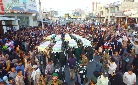 پیکر پاک هشت تن از شهدای گمنام دوران دفاع مقدس روز چهارشنبه در جزیره قشم تشییع شد.