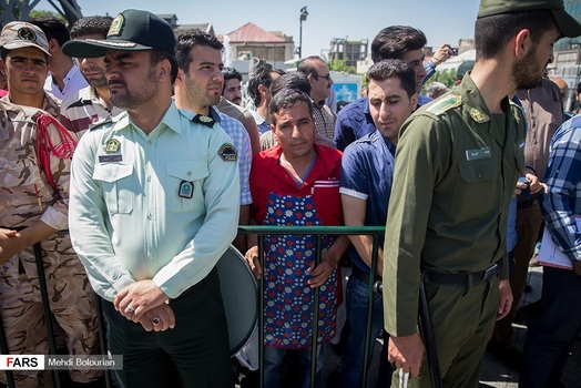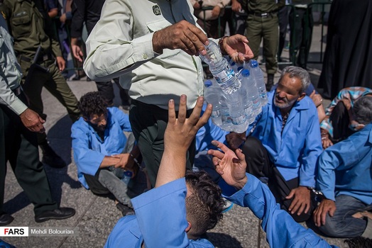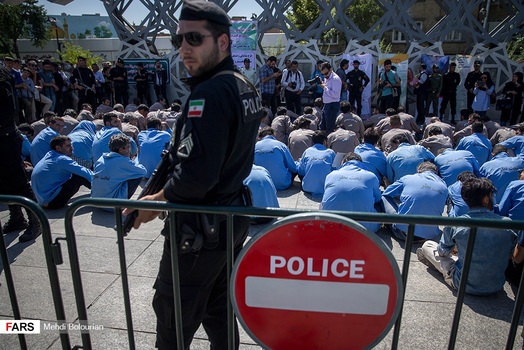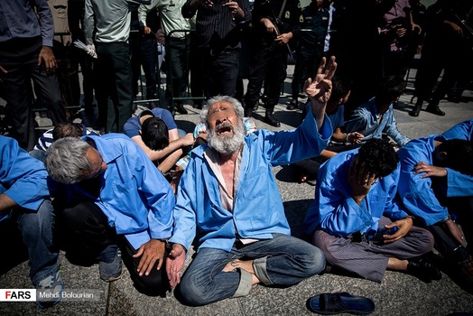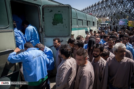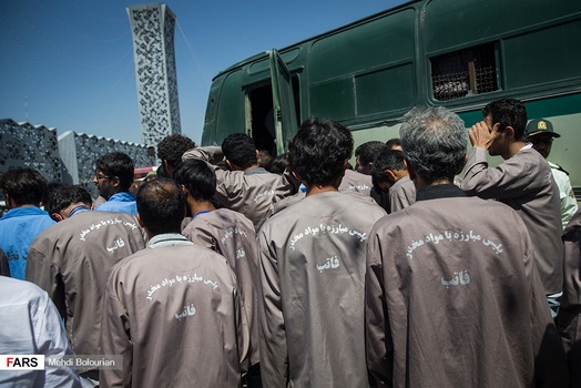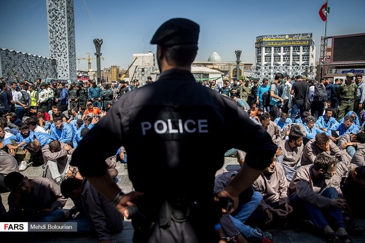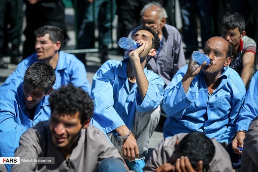 نمایش خیابانی دستگیرشدگان مواد مخدر و اراذل و اوباش منطقه صبح دوشنبه دوم مرداد با حضور سردار ساجدینیا فرمانده انتظامی تهران بزرگ در شمال غرب میدان امام حسین (ع) برگزار شد.