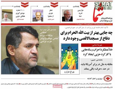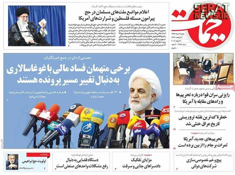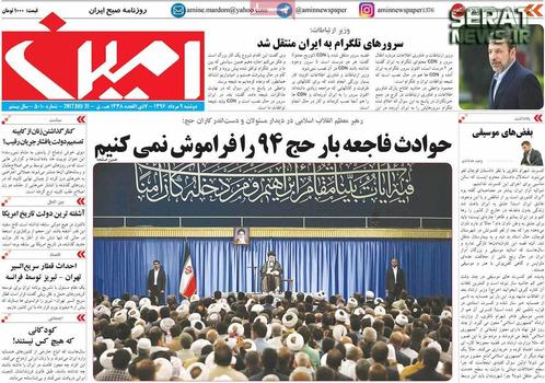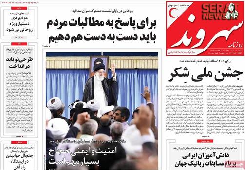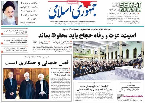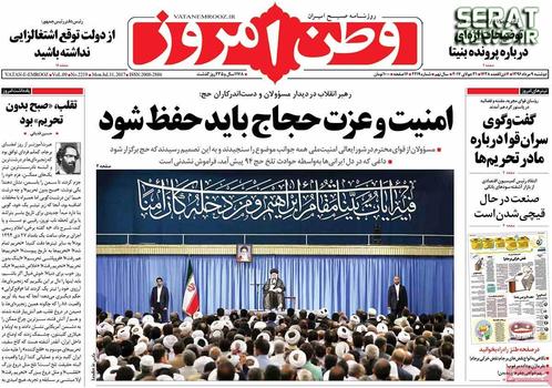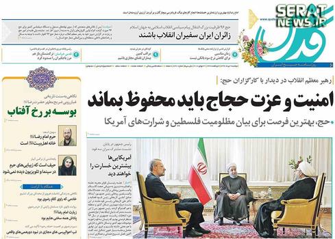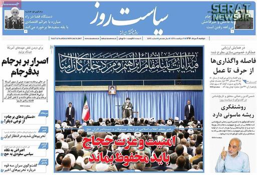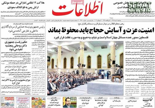 روزنامههای صبح ایران بیانات رهبر معظم انقلاب در جمع دستاندرکاران حج را به عنوان تیتر برگزیده خود انتخاب کردهاند.