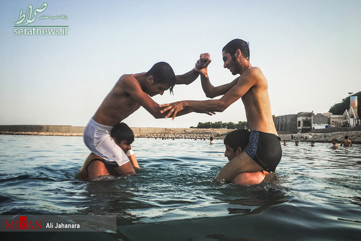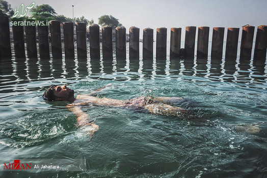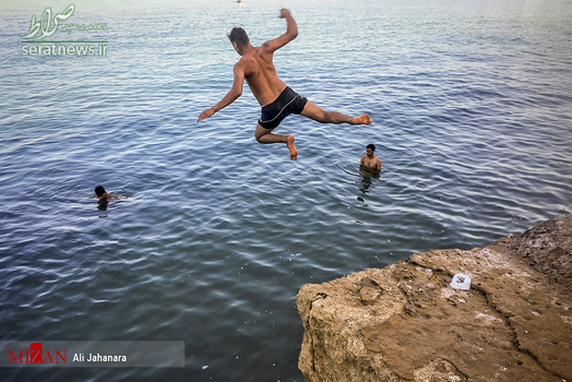 تصاویر/ گرما در بوشهر، آب تنی در خلیج فارس