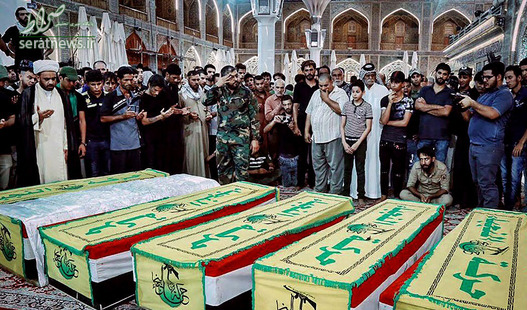 پیکر شماری از رزمندگان مقاومت اسلامی نُجَباء که چندی پیش در مثلث مرزی عراق با سوریه و اردن به مقام رفیع شهادت نایل آمده بودند؛ در حرمهای امام حسین و امیر المومنین علی علیهما السلام طواف داده شد. پیکر پاک این رزمندگان شهید که در درگیریهای سنگین با عناصر گروه تروریستی داعش آسمانی شده بودند؛ با شعارهای ضد تروریستی و ضد استکباری بر روی دستان سیل کثیری از مردم شهید پرور عراق و همرزمانشان تشییع شد. همچنین بر پیکرهای پاک شهدای نُجَباء با حضور جمعی از علما، روحانیون، فرماندهان، رزمندگان حشد شعبی، نیروهای مسلح و همچنین خانوادههایشان نماز اقامه و در نهایت، در آغوش خاک آرام گرفتند.