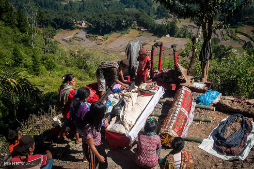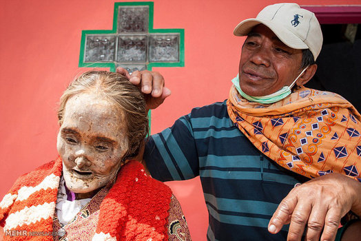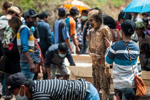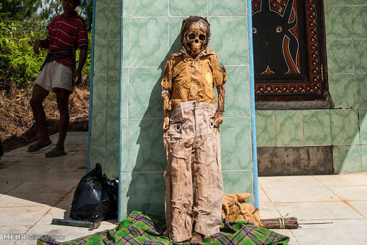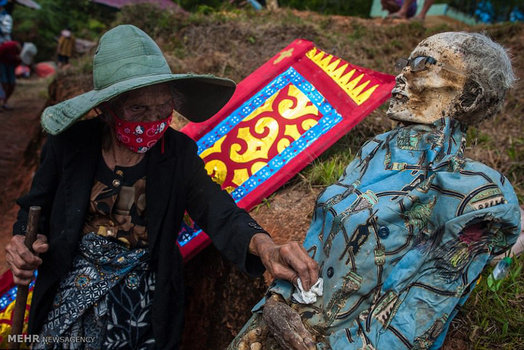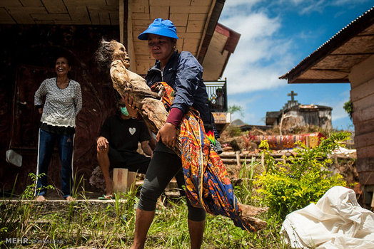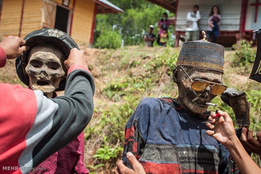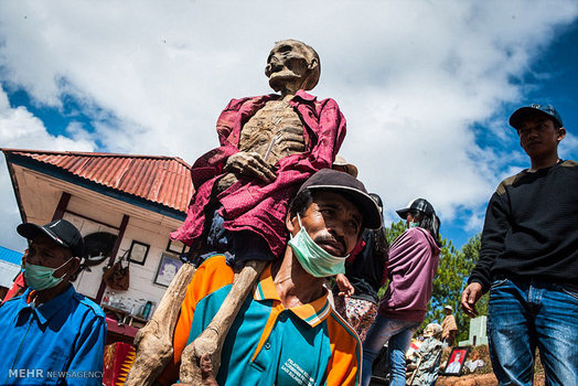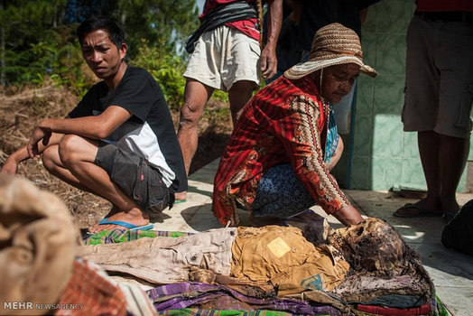 اهالی قبیله توربجان در اندونزی در جریان یک مراسم سالانه مردگان خود را از گور خارج می کنند و به آنها لباس می پوشانند