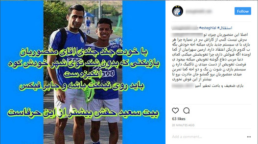 استقلال پیش از این نیز نتایج خوبی کسب نکرده بود و تا هفته پنجم در رده 15 از لیگ 16 تیمی کشور قرار داشت. مسئولان این تیم نیز به کادر فنی و سرمربی استقلال یعنی علی منصوریان دو بازی فرصت داده بودند که نتیجه آن یک پیروزی در جام حذفی مقابل گل گهر سیرجان و شکست اخیر مقابل پارس جنوبی جم بود.