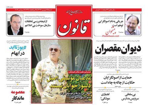 صفحه اول روزنامه های شنبه ۲۵ شهريور