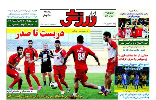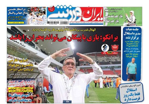 صفحه‌اول روزنامه‌های ورزشی یکشنبه‌ ۲۶ شهريور