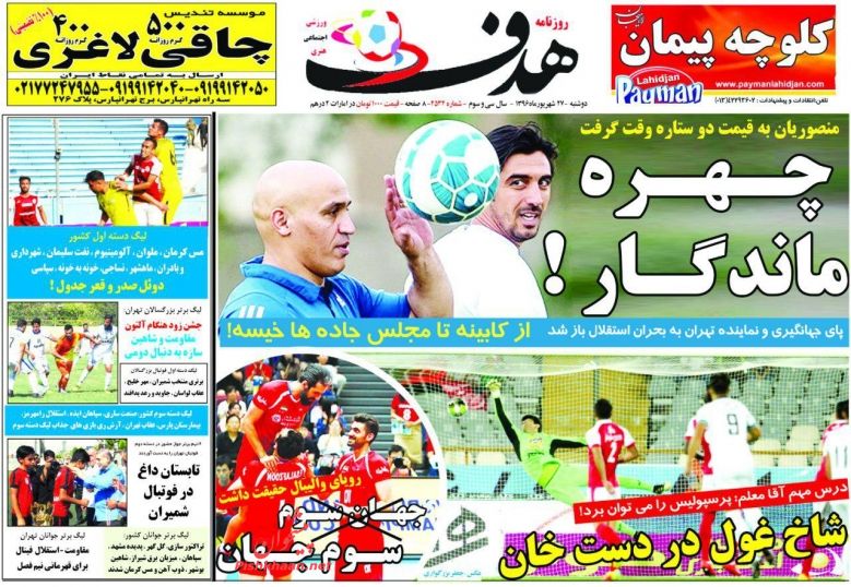صفحهاول روزنامههای ورزشی دوشنبه ۲۷ شهريور