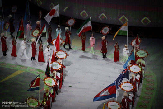 مراسم افتتاحیه بازی های آسیایی داخل سالن در ترکمنستان شامگاه یکشنبه در استادیوم اصلی بازی ها برگزار شد.