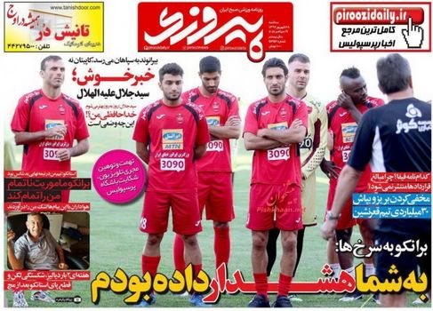 صفحه‌اول روزنامه‌های ورزشی سه‌شنبه ۲۸ شهريور