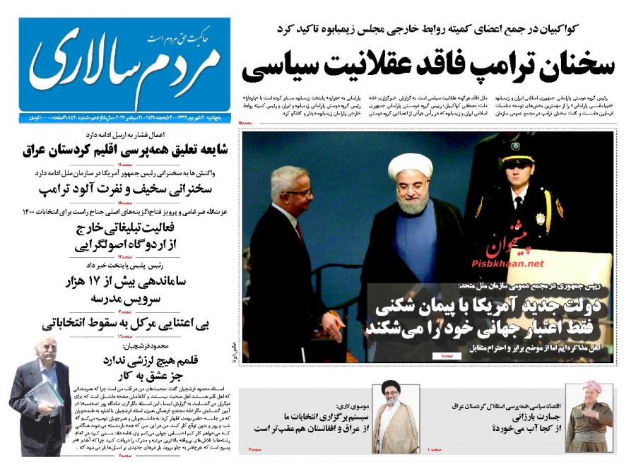 صفحه اول روزنامه های پنجشنبه ۳۰ شهريور