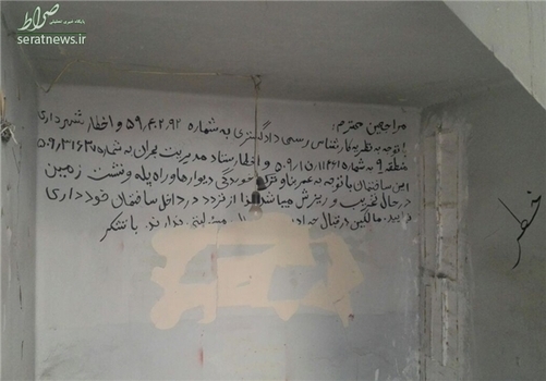سری که میچرخوانی با یک نوشته دیگر مواجه میشوی که با رنگ قرمز روی کچ های نیمهریخته دیوار نوشته است« خطر مرگ»! و تو بازهم کنجکاو تر می شوی که اگر مطب دایر است این خطر مرگ نوشته شده روی دیوار چیست! از آن بدتر اینکه با کلیشه روی دیوار حک شده است«این ملک در حال تخریب است! لطفا از تردد در آن خودداری کنید»