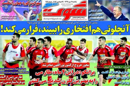 صفحه اول روزنامه های ورزشی یکشنبه‌ ۲ مهر 1396