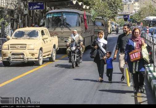 کاروان های نمادین اعزام نیرو به مناطق عملیاتی روز یکشنبه و همزمان با گرامیداشت هفته دفاع مقدس در سطح شهر تهران به حرکت درآمدند.