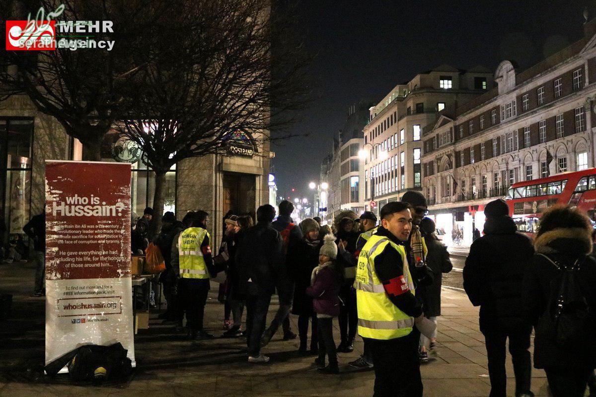 توزیع غذای نذری میان بیخانمانها و مردم در شهر لندن توسط کمپین «Who is Hussain»