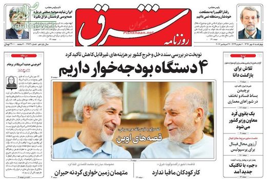 صفحه اول روزنامه های چهارشنبه ۵ مهر 1396