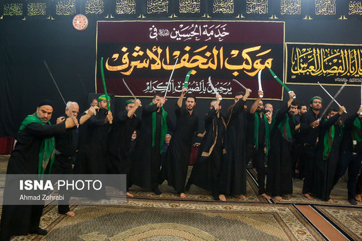 «مشق شمشیر» آیین سنتی عزاداری اهالی نجف اشرف است که روایت کننده آن است که در شب عاشورای حسینی، حبیب ابن مظاهر اسدی برای آرام کردن حضرت زینب کبری(س) به همراه حضرت اباالفضل عباس(ع) و یارانی که برای دفاع از دین و امامشان مانده بودند به سمت خیمه گاه حضرت اباعبدالله الحسین(ع) رفتند. و حبیب ابن مظاهر فریاد زد: «ای گروه بانوان و حرمهای رسول خدا(ص) این شمشیرهای جوانمردان شماست که سوگند یاد کردهاند در غلاف نکنند مگر اینکه گردن دشمنان را بزنند و این نیزههای جوانان شماست که قسم خورده اند به زمین نیفکنند مگر اینکه به سینههای دشمن فرو کنند». در دهه اول محرم الحرام و تا شب هشتم، نجفی های مقیم قم با حرکت دسته ی مشق شمشیر به سمت حرم حضرت فاطمه معصومه(س) به عزاداری می پردازند.