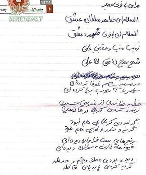 ببخشید اگر قد کشیدنت را ندیدم و مرد شدنت را نظاره نکردم... سعی کن راه مرا ادامه بدهی... سعی کن کاری کنی که سرانجام آن به شهادت ختم شود...