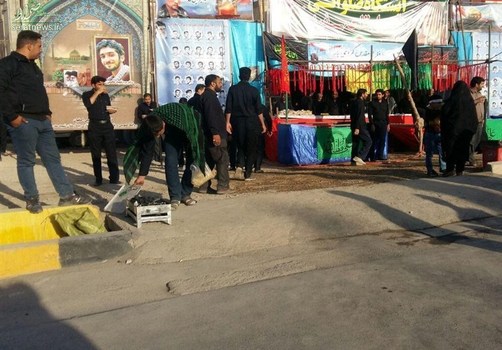 در این مراسم گروه مارش به اجرای مراسم پرداختهاند، مراسم با پخش تلاوت آیات قرآن آغاز شده است و عدهای بر سر مردم گلاب میپاشند. فضا سرشار از یاد و عطر شهدا شده است.
