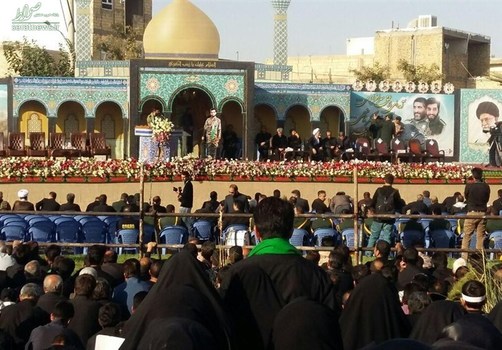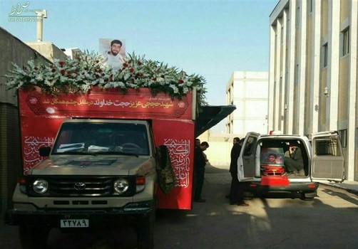 حرکت ماشین حمل پیکر شهید حججی از میدان بسیج به سمت جایگاه آغاز شده است.