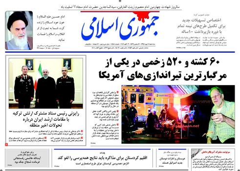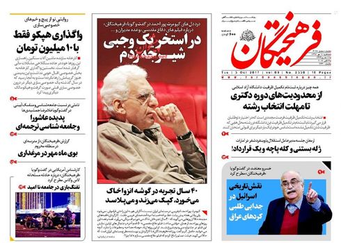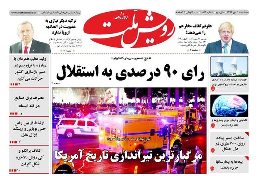 صفحه اول روزنامه های سه‌شنبه 11 مهر 1396