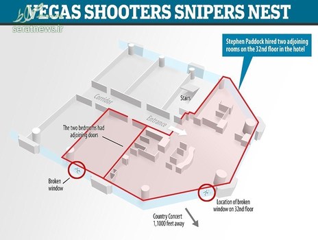 صراط: رسانهها تصاویر جدید از اتاقی که تیرانداز حادثه لاسوگاس از آنجا به سمت مردم آتش گشود منتشر کردند.