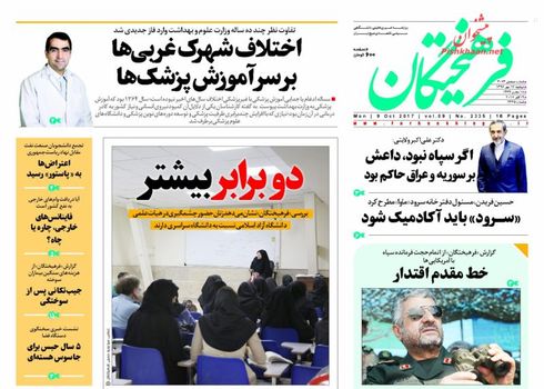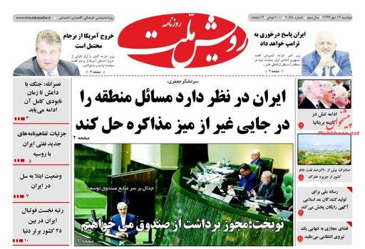 صفحه اول روزنامه های دوشنبه 17 مهر 1396