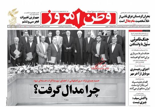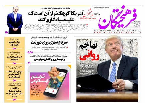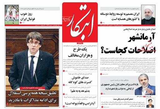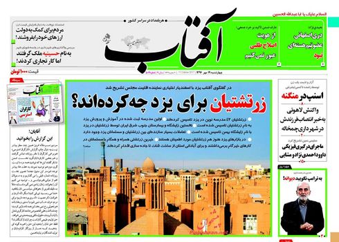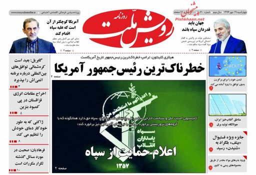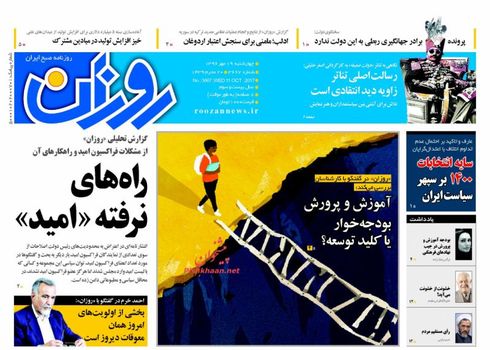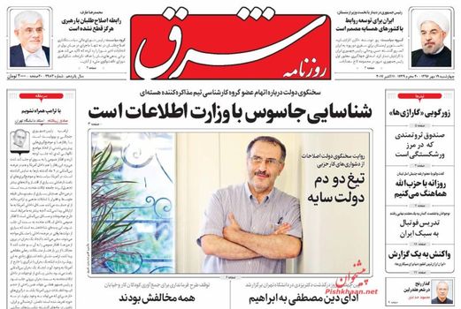 صفحه اول روزنامه های چهارشنبه 19 مهر 1396