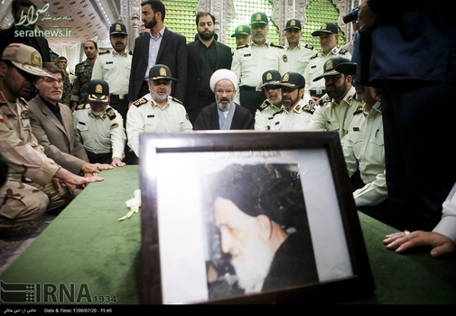 سردار حسین اشتری و جمعی از فرماندهان، مسئولان و کارکنان نیروی انتظامی روز پنجشنبه و همزمان با هفته نیروی انتظامی با نثار تاج گل و قرائت فاتحه ضمن ادای احترام به مقام شامخ معمار کبیر انقلاب اسلامی با آرمان های والای امام راحل، شهدا و رهبر فرزانه انقلاب تجدید میثاق کردند.