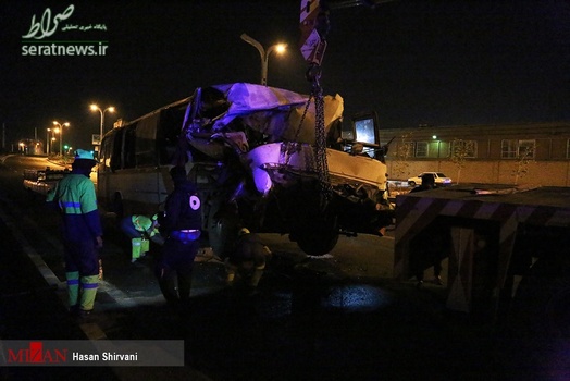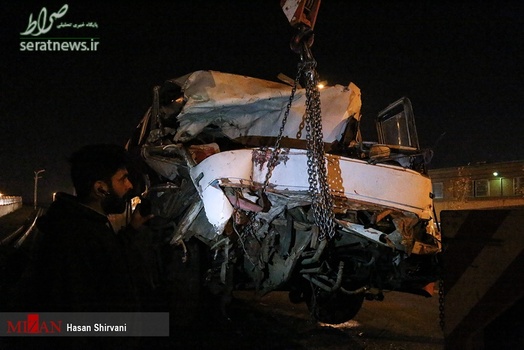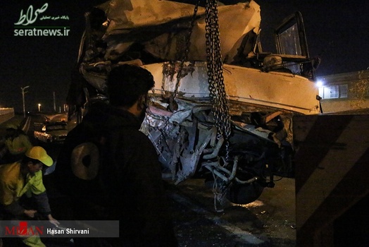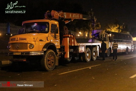 تصاویر/تصادف شدید اتوبوس با تریلی در جاده قدیم کرج