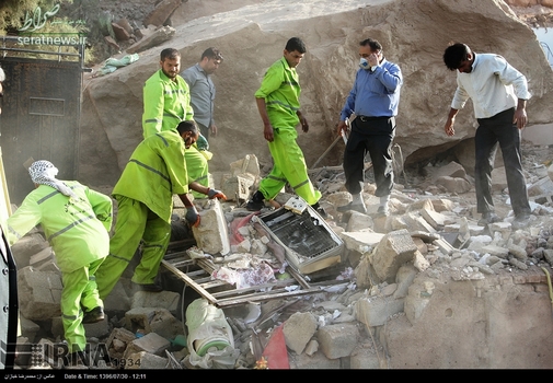 تصاویر/حادثه سقوط صخره بر روی منازل مسکونی در اهواز