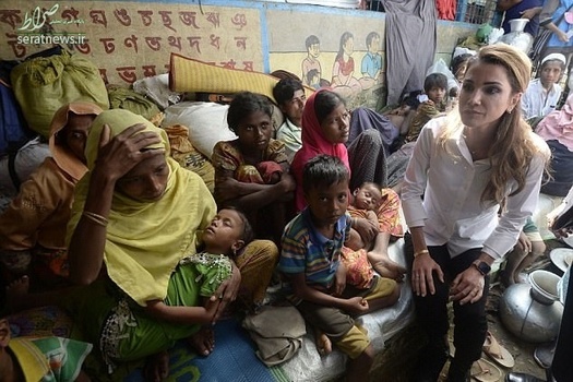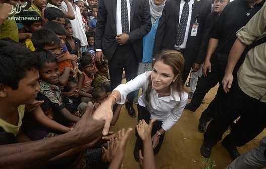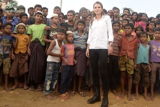 رانیا عبدالله ملکه اردن روز دوشنبه در سفری که به بنگلادش داشت در جمع مسلمانان روهینگیایی حضور یافت. وی از نزدیک وضعیت زندگی آنها را در اردوگاه پناهجویان در جنوبشرقی منطقه کوکس بازار بنگلادش بررسی و کمکهای انساندوستانه خود را تقدیم ساکنان این اردوگاه کرد.