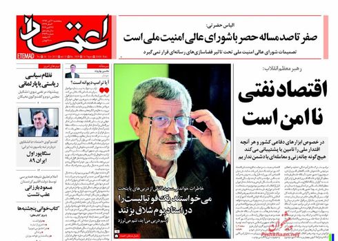 صفحه اول روزنامه های پنجشنبه ۴ آبان