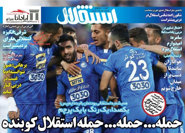 صفحه اول روزنامه های ورزشی پنجشنبه ۴ آبان