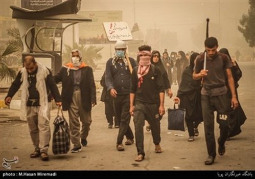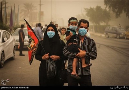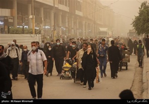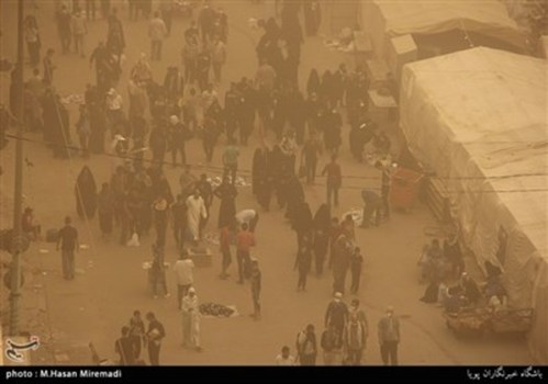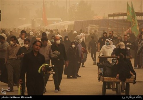 همزمان با اربعین حسینی زائران پیاده روی مراسم اربعین از نجف اشرف به سمت کربلا را آغاز کرده اند.در این روزها هوای شهر نجف بسیار غبارآلود است و هجوم ریزگردها آسمان نجف را تیره و تار کرده است.