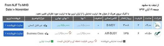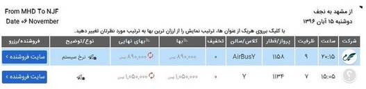 پروازهای مشهد-نجف-مشهد نیز در وضعیت مشابهی به لحاظ گرانفروشی به سر میبرد.