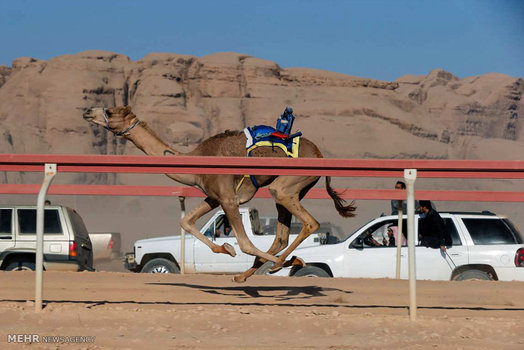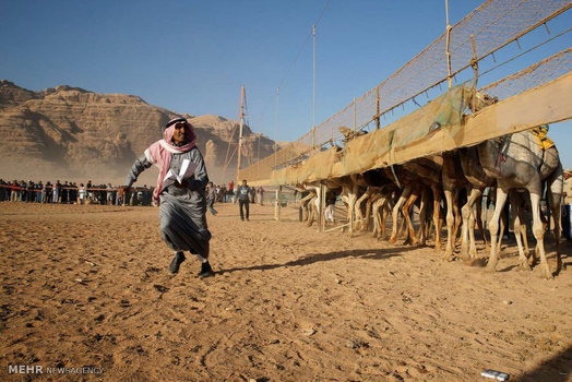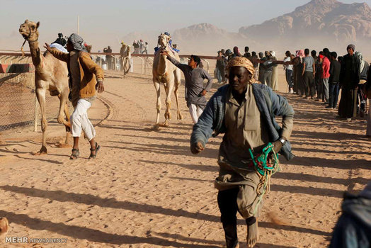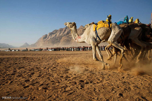 مسابقه دوی شترها در منطقه وادی روم در جنوب اردن برگزار شد.