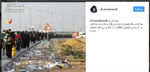 گروه سیاسی صراط: معاون زنان و حقوق شهروندی رییس جمهور با انتشار عکسی در صفحه اينستاگرام خود ،به زوار اربعین طعنه محیط زیستی زد . اين اقدام وي مورد اعتراض مردمی قرار گرفته است.
