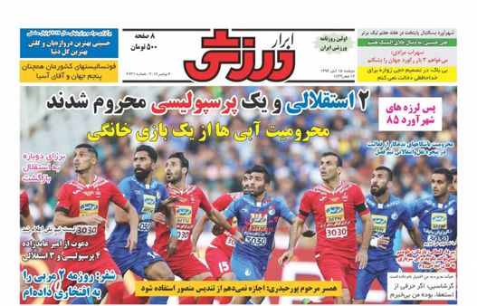 صفحه اول روزنامه های ورزشی دوشنبه 15 آبان 1396