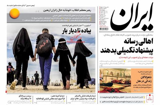 صفحه اول روزنامه های چهارشنبه ۱۷ آبان
